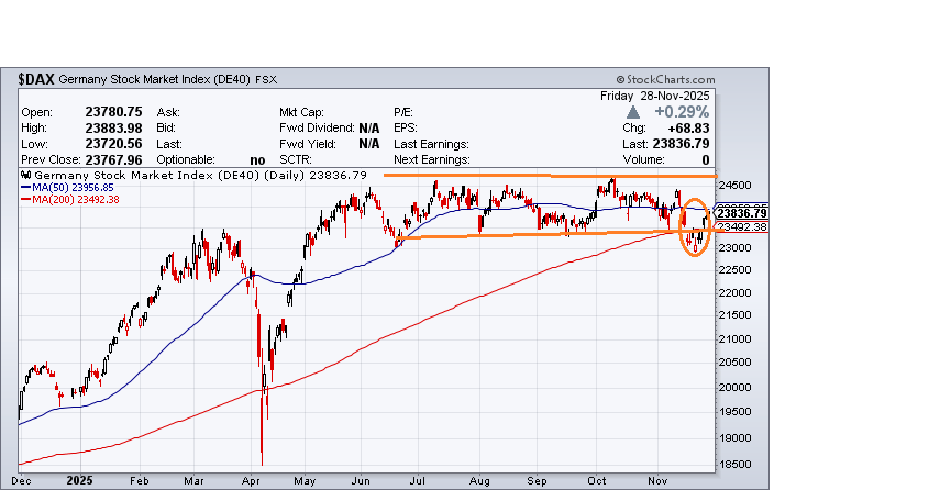 Seit seinem zyklischen Hoch im Juli war mit passiven Investments im DAX kaum noch ein Blumentopf zu holen, obwohl es selbstverständlich einige sehr interessante und starke Aktien gab. Insgesamt tritt der Leitindex jedoch seit dem Frühsommer unter mehr oder weniger großen Schwankungen auf der Stelle.