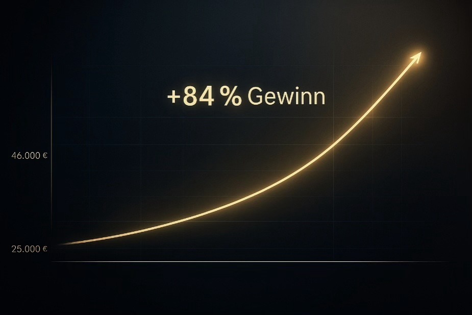 Das entspricht einem Gewinn von 21.000 Euro – oder +84 % Gesamtperformance. In wenigen Monaten.